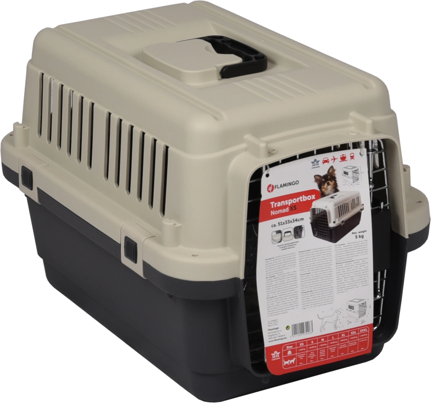 XS : 50 x 33 x 33 cm – conforme à la norme iata : autorisé sur toutes les compagnies aériennes européennes max 5kg. Les ouvertures d’aération assurent une circulation optimale de l’air – Porte en treillis métallique avec système de verrouillage pratique pour une ouverture rapide et une fermeture sûre – Comprend un bol à boire en plastique amovible – Construction stable : plastique résistant, porte en treillis métallique, barres latérales et surface particulièrement durable – Parfait pour le transport en voiture, en train, en bateau, en avion ou il peut être utilisé comme une maison mobile fiable – Comprend 4 roues pour une utilisation et un transport faciles – Avec poignée(s) pratique(s).