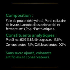 PRO PLAN® a mis au point une gamme d’aliments complémentaires ciblés destinés à agir sur la mobilité, l’immunité, la vitalité, la digestion, la peau & le pelage et le bien-être. PRO PLAN® Natural Defences+ protège votre chat de l’intérieur, grâce à l’action des postbiotiques. Sa formule est scientifiquement conçue pour : – Soutenir le système immunitaire – Aider la production naturelle d’anticorps
